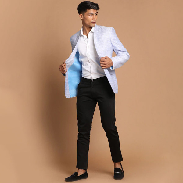 Men Lavender Coloured Self Design Single Breasted Ethnic Blazer