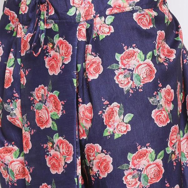 - Navy blue dhoti pants with intricate embroidery detailing, has an elasticated waistband with slip-on closure