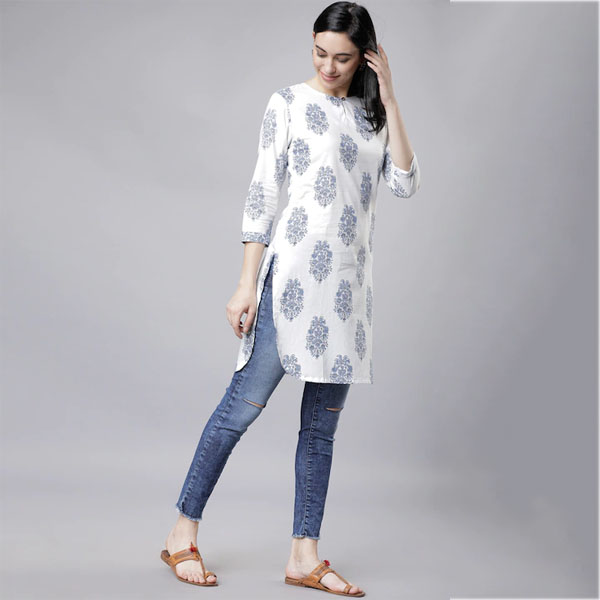 White & Blue Printed Tunic