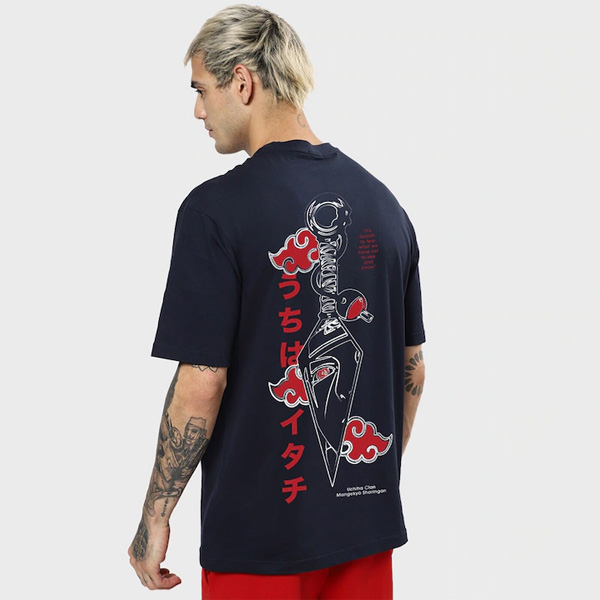 Men Blue Printed Loose T-shirt