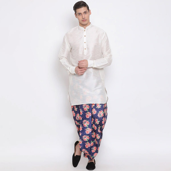 - Men Blue & Pink Floral Printed Dhoti