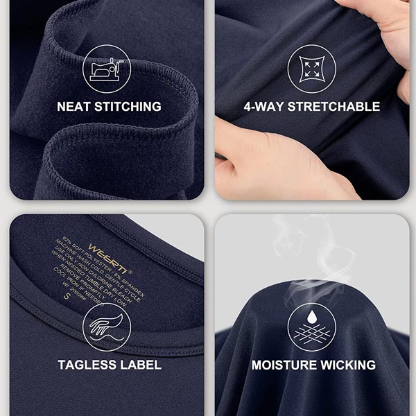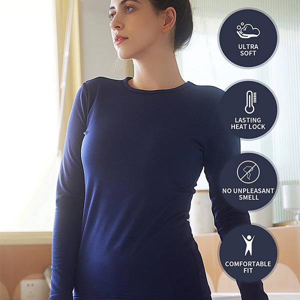 Thermal underwear women set made of 92% Soft Polyester / 8% Spandex fabric that feels cozily soft with fleece lined, lightweight but warm, long johns for women thermal sets give you a sense of security throughout the winter. Ladies thermal underwear set combines performance with fashion to give you a more streamlined look.